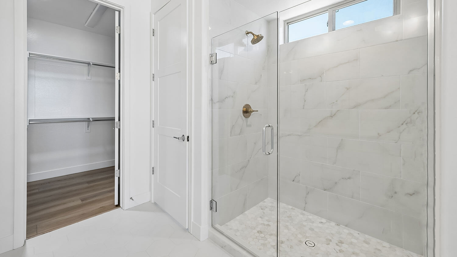 Heavy Clear Glass Shower Enclosure at Primary Bath