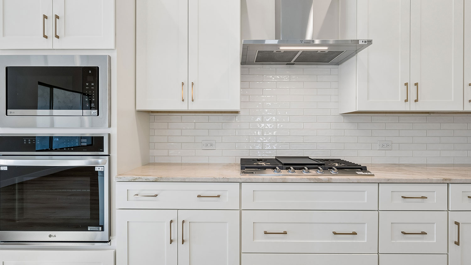 LG built-in Stainless Steel gas package includes:Convection Wall Oven, Cooktop, Microwave and Dishwasher.